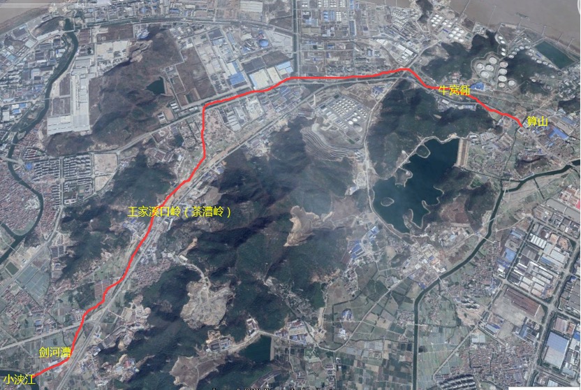 同治四年(1865)镇海县的乡绅胡枢,胡洪安等人向宁绍台道提案,要从镇海崇邱乡(今北仑区小港)小浃江下游剑河漕开凿一条到灵岩乡水井头(新碶算山)河渠的建议。目的就是利用东钱湖的湖水灌溉岭里头灵岩、泰邱、海晏三乡,使三乡也能共沾湖水的美利。这个想法很大胆,看起来好像也很有道理,根据就是乾隆《镇海县志》记载岭里头三乡一直在缴东钱湖水的税赋,但一直没有得到东钱湖水的灌溉,所以需要开凿一条河渠,从小浃江引水到岭里头使用,才能真正受惠于里面的老百姓。中国自古以来就是一个农业国家,水利兴农一直是地方官员的重要内容。道台史致谔[iii]接到这个提案后,第一反应这是一件好事,“意在久利农田,为功桑梓,深堪嘉尚”。但是从舆图上看,从镇海崇邱乡的剑河漕(今在小港街道胡家塔)到林隘,然后再从板桥头到灵岩乡的水井头(今新碶街道算山),都居两山之中,开凿实属不容易,并且还要考虑,每年台风季节山洪暴发,一旦冲毁就前功尽弃。这必须要去实地考察,明确究竟,勘察是否有窒碍之处,然后才能再做决定。于是,通过布政使把这提案转发给宁波府督办,请相关的鄞县及镇海县派人核实县志记载,并勘察工程的可行性。鄞县乡绅张恕等人了解情况后,表示极力反对在剑河漕开河,且恳请由宁波知府牵头,邀请一位德高望重熟悉地方情形的官员来调查处理。最后,鄞、镇乡绅一致推定曾任台州府知府的黄维诰[iv]去实地查勘详情。黄维诰是江西临江府新淦县人,他是一个实干的官员,详细记录了整个考察过程:四月十六日从省城杭州启程,十九日到宁波。当时交通真不便,如今高铁不到一小时,当时需要三天。次日改装易服化妆成普通百姓,从源头东钱湖乘船开始查勘,看见湖宽有四五十里,但是湖心淤塞严重,湖水存量不多,沿湖一路下行到五乡,然后进入镇海崇邱地界,再一路到胡家塔剑河漕地方,下船上岸,翻越茶漕岭(估计有误,或古今名称不同。应该为王家溪口),此岭高度大约有五六丈左右。下岭过了林隘到李隘,此处居民稠密,大约有二千余户人家,往东再走三四里地就到了牛窝衕,这条山岭也有四五丈高,下岭过去三里就是与灵岩乡交界的水井头。就这样加起来,陆路大概有十二三里路。按照胡枢、胡洪安的呈请开河的路线来分析,中间有许多庐墓都要拆除,估算费用高达十三四万串之多,而且不容易成功。况且引东钱湖水东下灌溉灵岩、泰邱、柴桥三乡,田地有十余万亩,湖水恐怕会立马放完。黄维诰勘察回来后查阅历代《史志》记载:东钱湖位于鄞县的东乡,历古以来都只是灌溉七乡,如老界、阳堂、翔凤、手界、丰乐、鄞塘六乡,都属于鄞县,其中鄞塘与白杜等处共为一乡,其余就是镇海县的崇邱八里为一乡。问询了许多地方的乡绅,都认为就是七乡的灌溉在大旱之年也只能保持三十天的用水,并没有多余湖水可用。